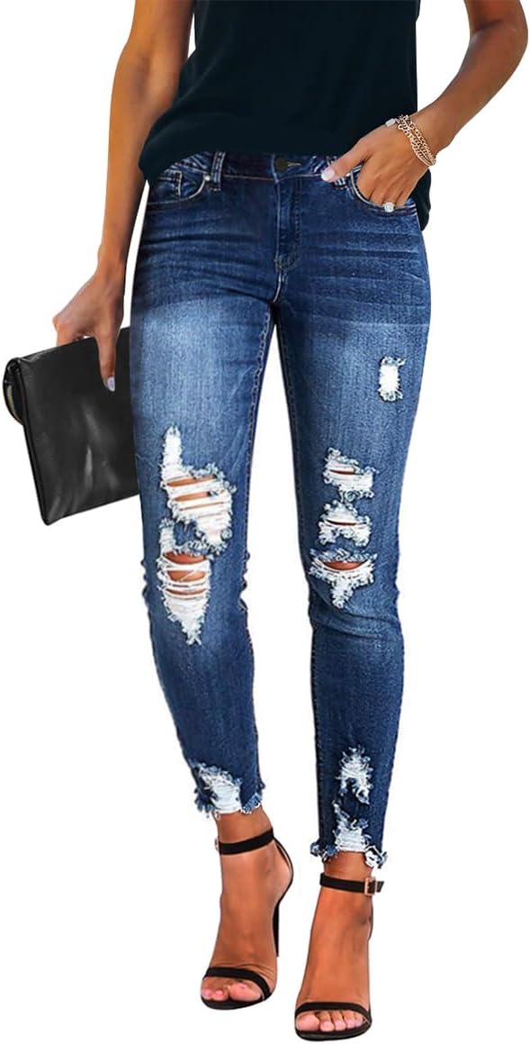 Women's Ripped Skinny Jeans Distressed Stretchy Denim Pants