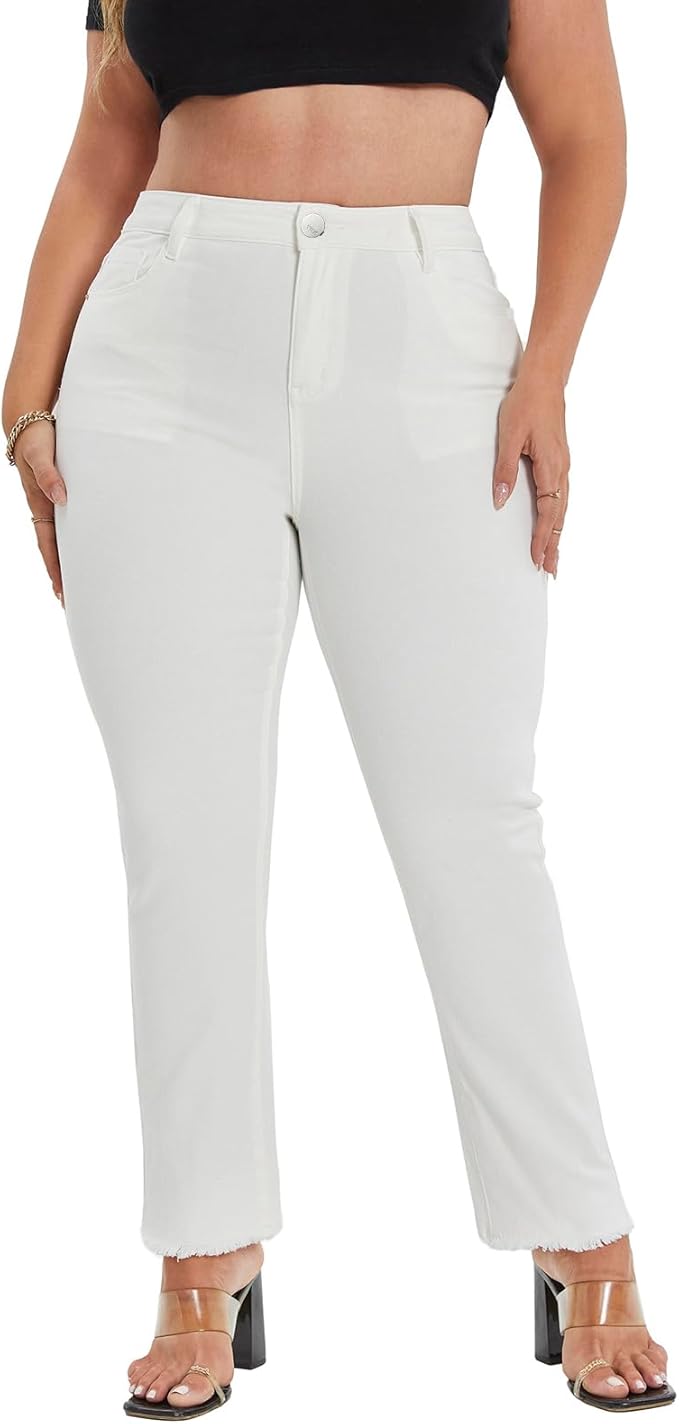 Plus Size Straight Jeans for Women High Waist Loose Slim Women Jeans Curvy Stretchy Denim Pants for Women