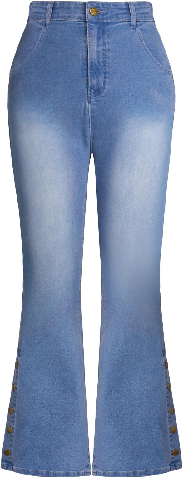 Women Bell Bottom Jeans High Waisted Wide Leg Bootcut Jeans with Button Slit Hem
